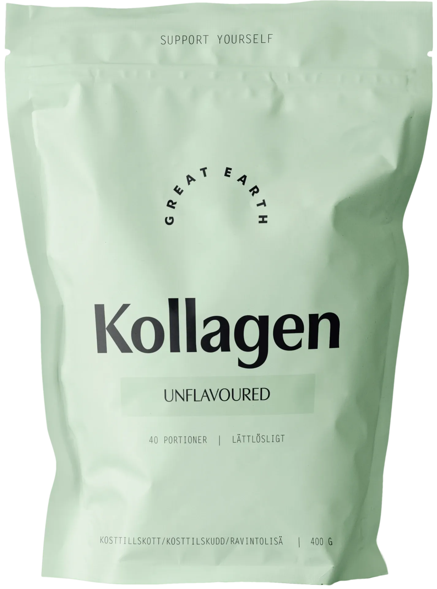 För dig som vill ha kollagen i pulverform och föredrar att blanda själv. Great Earth använder hydrolyserat bovint kollagen, vilket är populärt för allmän kollagenpåfyllnad – men mindre riktat mot hudens glow än marint kollagen.